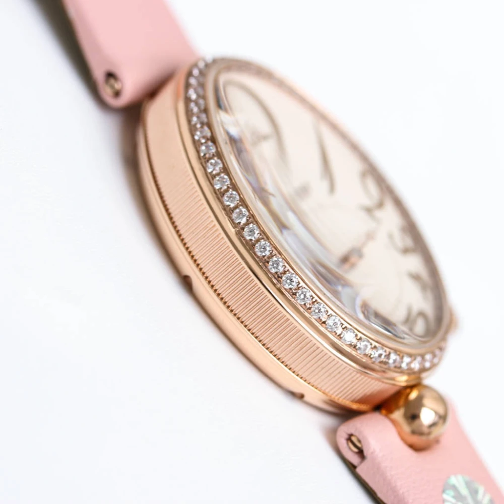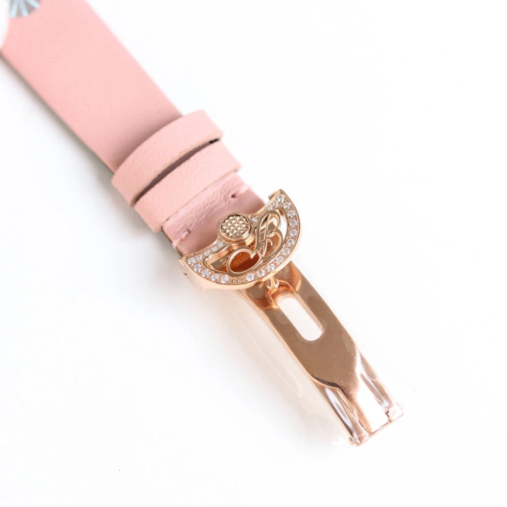 Strap:Pink Silk Wrapped in Lambskin strap