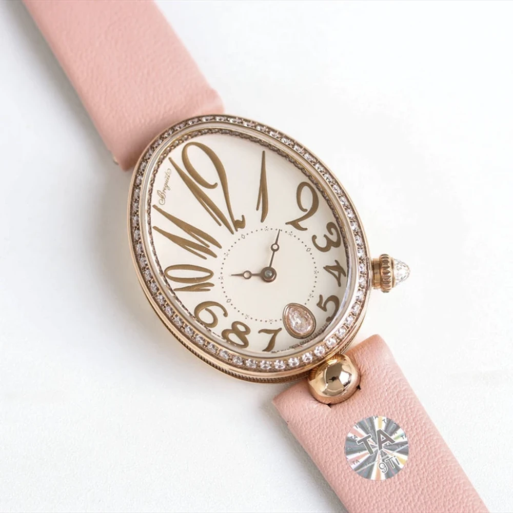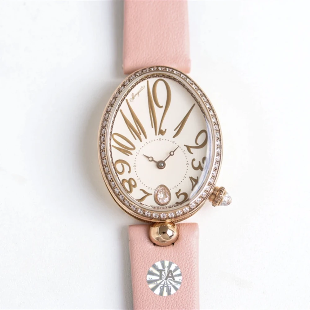 Breguet Reine de Naples 8918BA 1:1 Best Edition White Dial And Diamonds Bezel on Pink Silk Wrapped in Lambskin