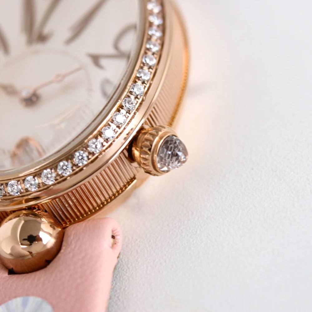 Reine de Naples 8918BR White Dial And Diamonds Bezel on Pink Silk Wrapped Lambskin Strap GRF 1:1 Best Edition