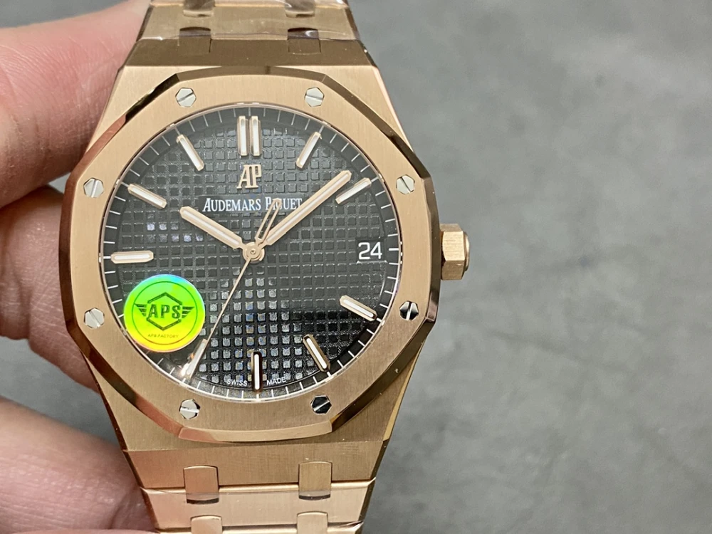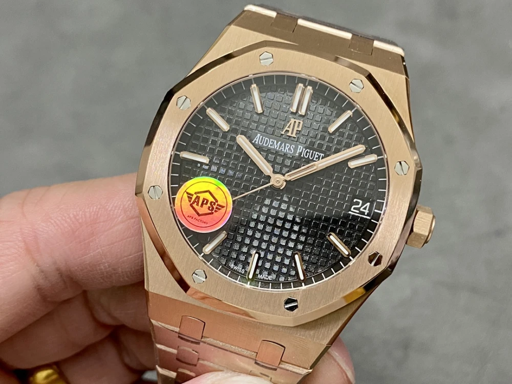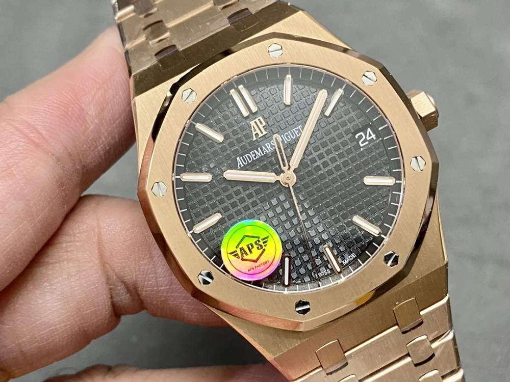 The Images you see are of Actual Replica Watches, You will get exactly the same watch you see in the Images!Audemars Piguet Royal Oak Automatic Watch, Black Dial,18K Rose Gold Plated Stainless Steel Case and Bracelet, Date Window at 3 o'clock Audemars Piguet Royal Oak Black Dial Close-up, Iconic Tapisserie Pattern,18K Rose Gold Plated Stainless Steel Hour Markers, Swiss Made AP Royal Oak Black Dial Watch Close-up, Audemars Piguet Branding, Date Display 18K Rose Gold Plated Brushed Stainless Steel BezelAP Royal Oak Black Dial Watch Close-up, Audemars Piguet Branding, Date Display 18K Rose Gold Plated Brushed Stainless Steel Bezel AP Royal Oak Watch Side View, AP Logo Engraved Crown,18K Rose Gold Plated Stainless Steel Case, Black Dial Detail Audemars Piguet Royal Oak 18K Rose Gold Plated Stainless Steel Watch Case Side View, Brushed Finish, Luxury Watch Craftsmanship Audemars Piguet Royal Oak Skeleton Back View, Exposed Automatic Movement, Rose Gold Rotor, Serial Number Engraving,18K Rose Gold PlatedStainless Steel Case and Bracelet Audemars Piguet Royal Oak 18K Rose Gold Plated Stainless Steel Deployment Clasp, AP Logo Engraved, Luxury Watch Bracelet Buckle Detail Audemars Piguet Royal Oak 18K Rose Gold Plated Stainless Steel Watch Bracelet Clasp with AP Logo, Luxury Swiss Watch Detail
