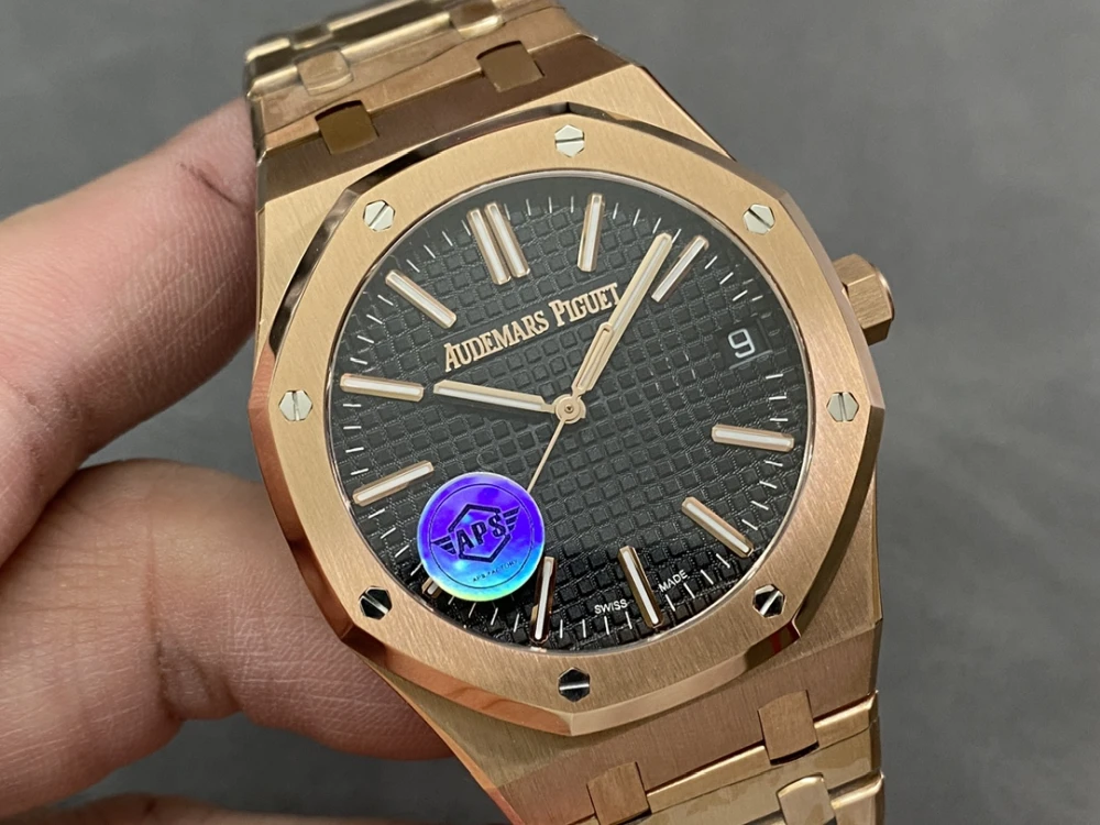 Royal Oak 41mm 15510 RG 1:1 Best Edition Black Dial on RG Bracelet SA4302 Super Clone