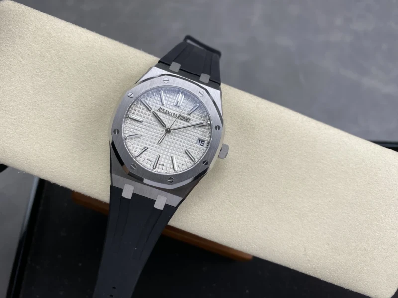 Royal Oak 15510 SS TOP 1:1 Best Edition Sliver Dial on Rubber Bracelet SA4302 Super Clone