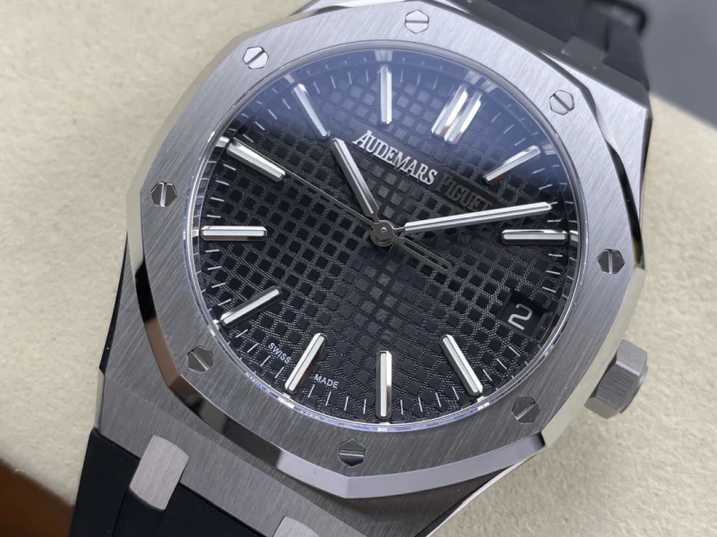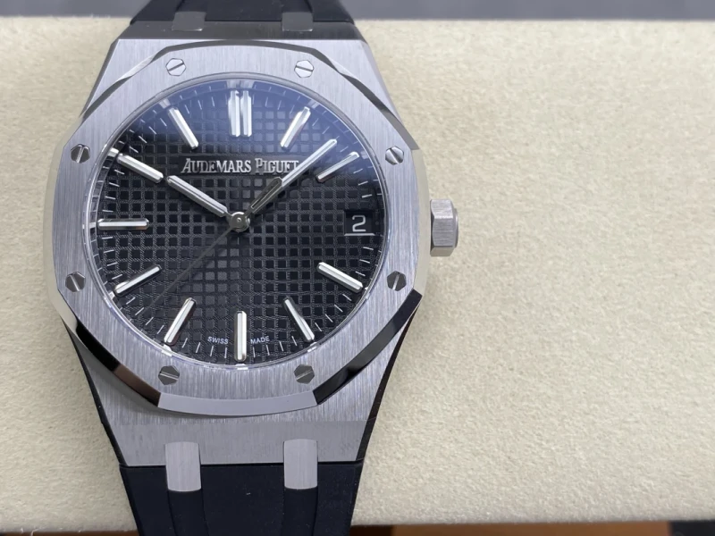 Royal Oak 15510 SS TOP 1:1 Best Edition Grey Dial on Rubber Bracelet SA4302 Super Clone