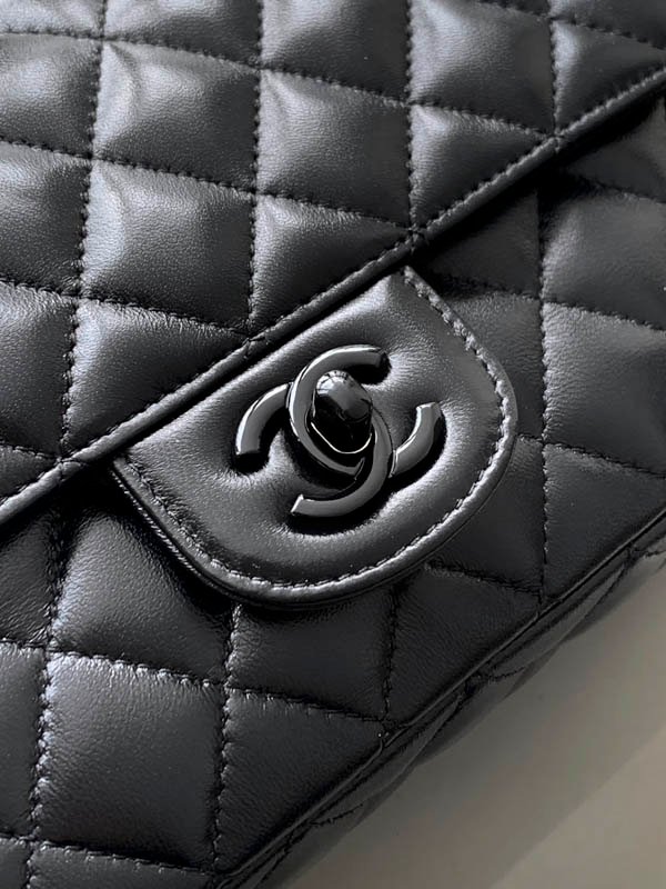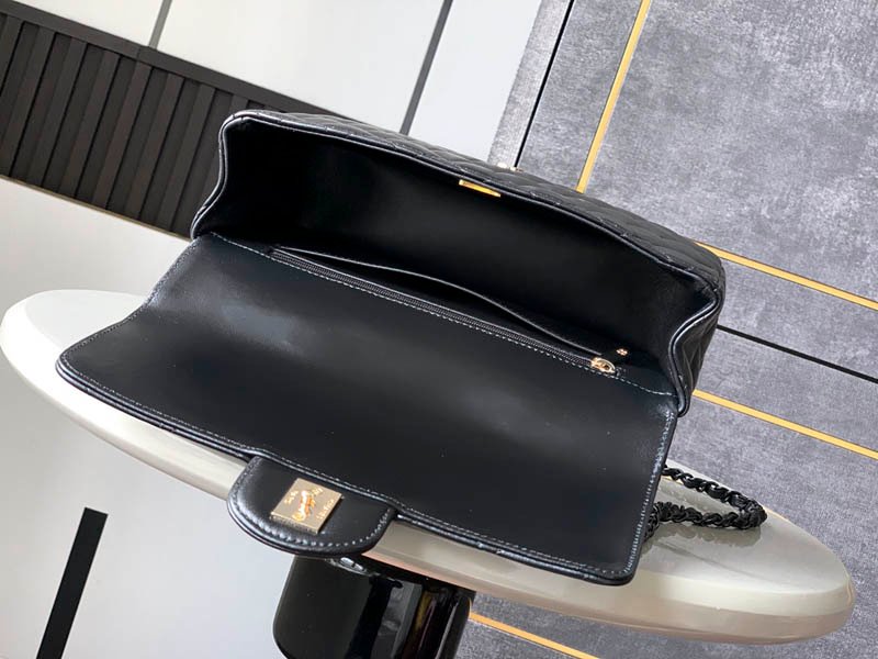 Chanel 25C Cruise Collection Large Flap Bag (23cm) in Black – A dreamy spring pastel handbag inspired by an underwater fantasy! This elegant flap bag features a top handle, luxe lambskin leather, and glossy metallic hardware. Part of the limited 14-piece collection reimagining Chanel’s iconic style, it comes in 4 soft shades: mint green, blush pink, milky white, and [4th color]. Perfect for a feminine, sophisticated look!