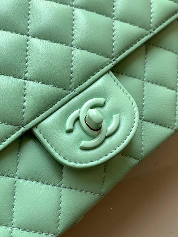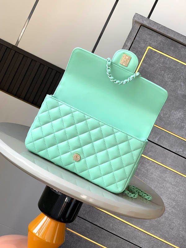 Chanel 25C Cruise Collection Large Flap Bag (23cm) in Light Green – A dreamy spring pastel handbag inspired by an underwater fantasy! This elegant flap bag features a top handle, luxe lambskin leather, and glossy metallic hardware. Part of the limited 14-piece collection reimagining Chanel’s iconic style, it comes in 4 soft shades: mint green, blush pink, milky white, and [4th color]. Perfect for a feminine, sophisticated look!