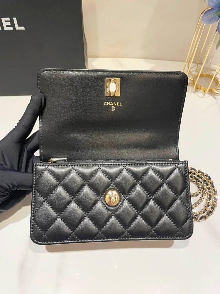 Chanel 25P Rhinestone Handle WOC AS3797(Black)