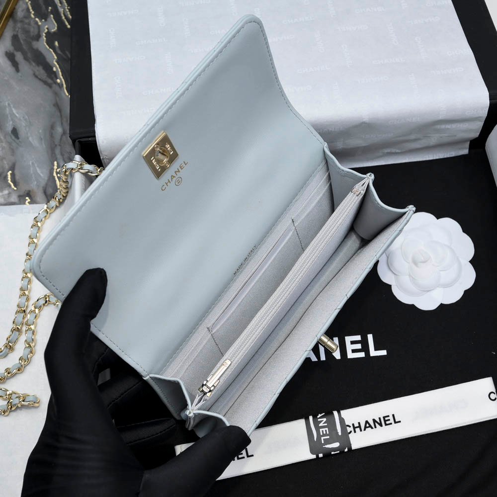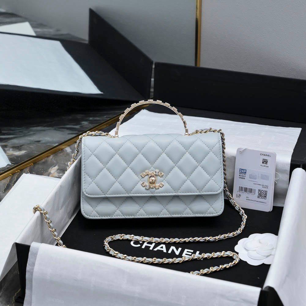 Chanel 24P Rhinestone Handle WOC in Haze Blue