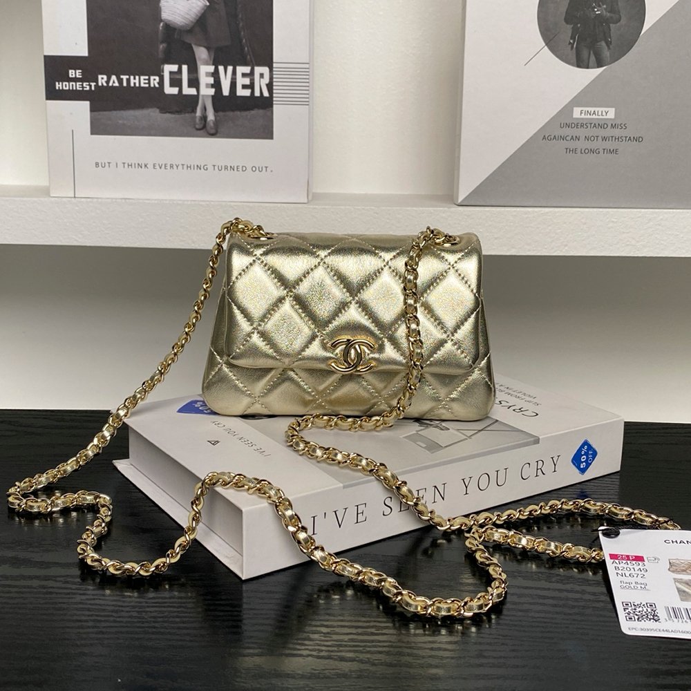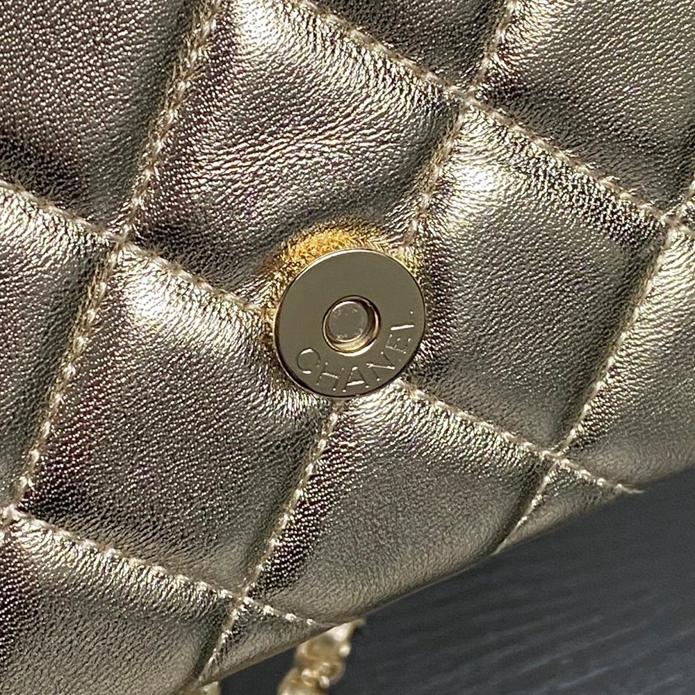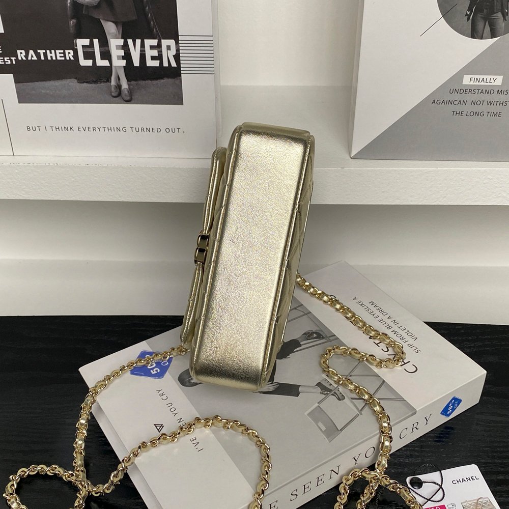 Chanel☪️25S CF mini mobile phone bag AP4593 Full of high-end feeling, cost-effective and cute, Lambskin with light gold chain, exquisite and elegant, super beautiful Size: 10×16.5×5cm