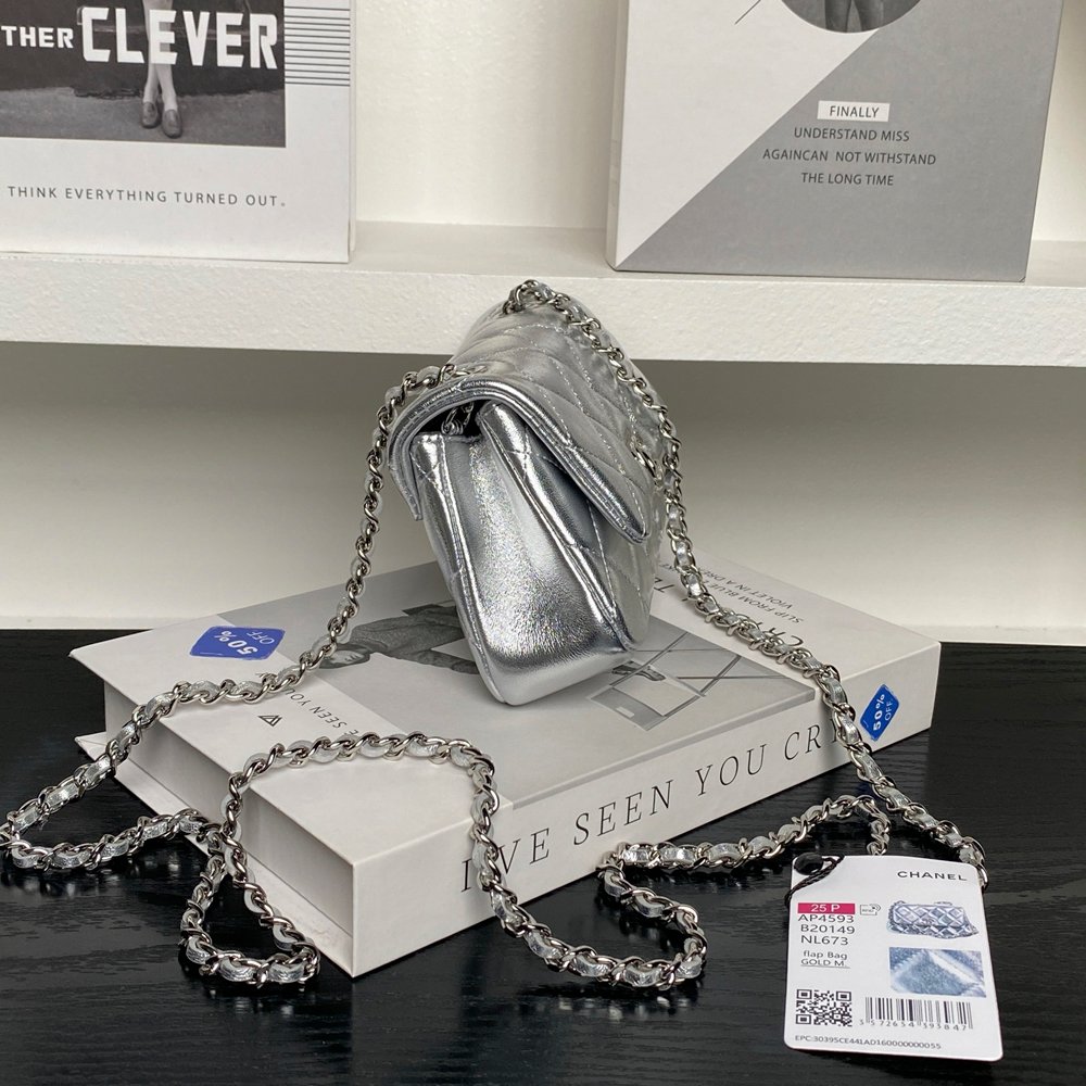 Chanel☪️25S CF mini mobile phone bag AP4593 Full of high-end feeling, cost-effective and cute, Lambskin with light gold chain, exquisite and elegant, super beautiful Size: 10×16.5×5cm