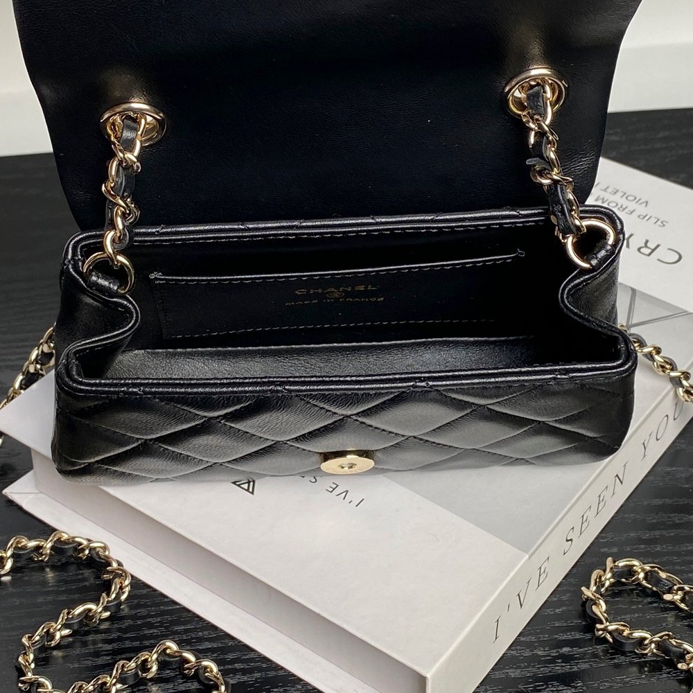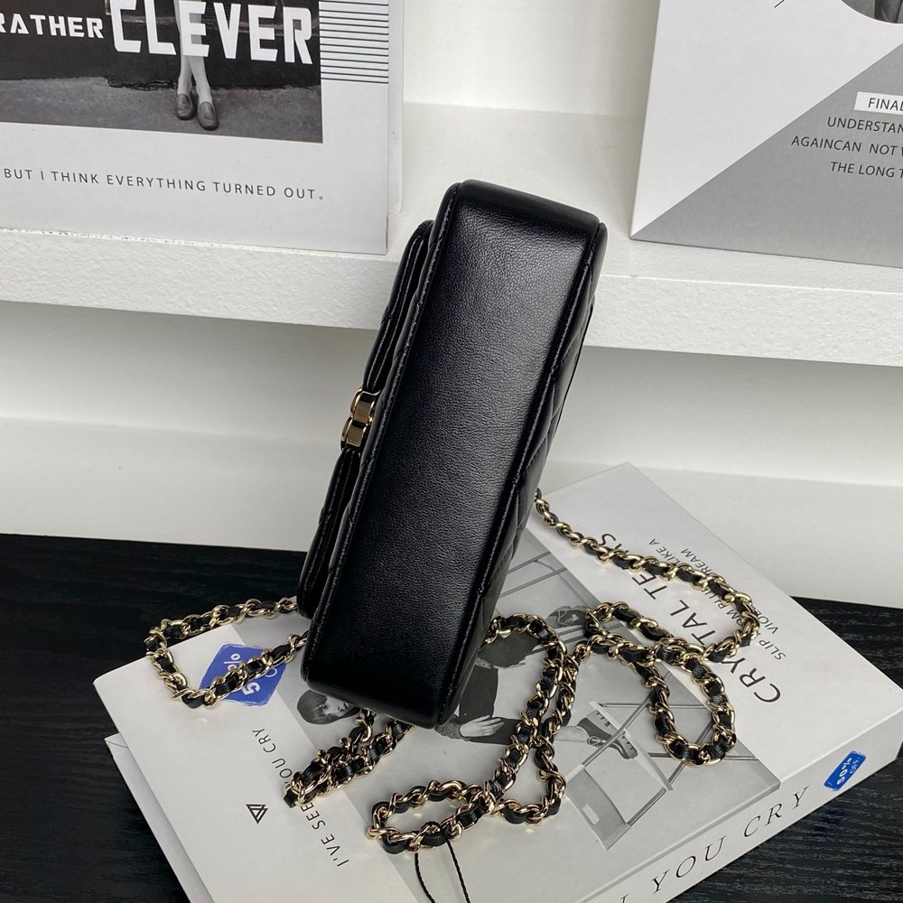 Chanel☪️25S CF mini mobile phone bag AP4593 Full of high-end feeling, cost-effective and cute, Lambskin with light gold chain, exquisite and elegant, super beautiful Size: 10×16.5×5cm