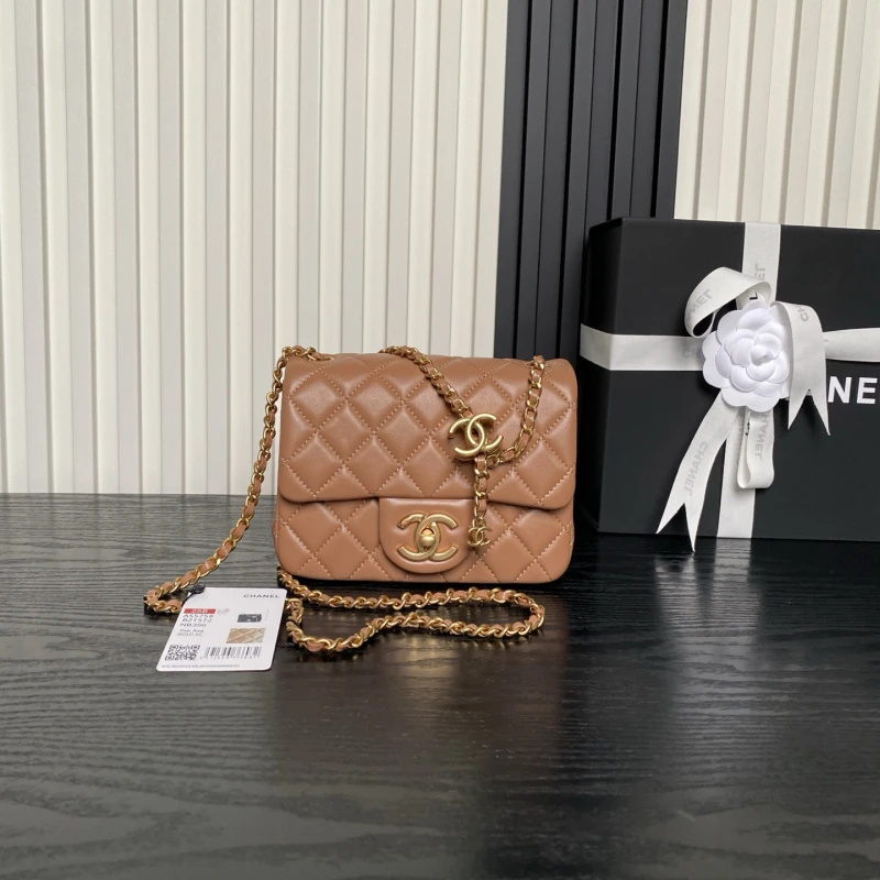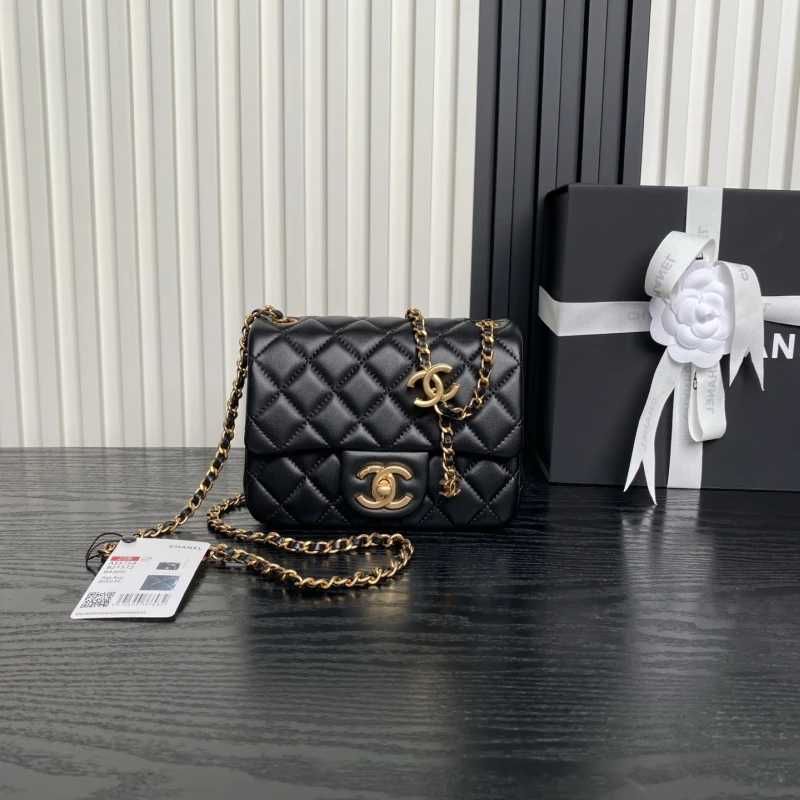Chanel 25B Mini Flap Bag AS5758 – Crafted from supple lambskin with golden-tone metal hardware, this bag features the iconic double-C adjustable chain strap and a compact yet practical silhouette. Its luxurious yet wearable design blends sophistication with modern functionality, making it the perfect statement piece for the 2025 Fall/Winter season.