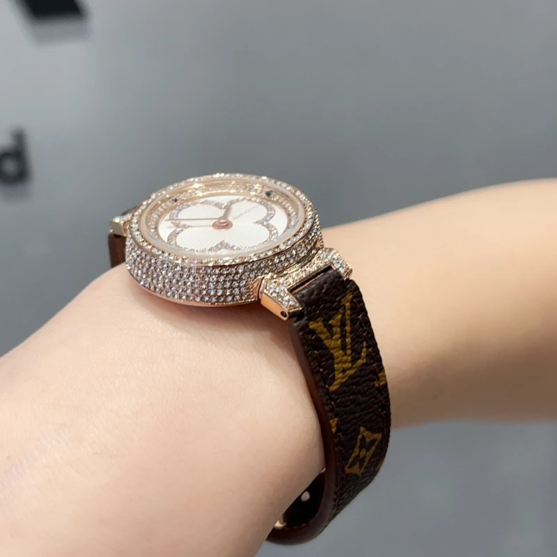 | Color | White/Rose gold diamond/Multiple colors leather strap |