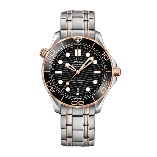 Omega Seamaster Diver 300M Ceramic Bezel Watch On SS Bracelet 1:1 Super Clone On A8800 Movement, a high-density ceramic bezel with enamel dive scales, and a polished ceramic dial with laser-engraved wave patterns. The steel bracelet is individually hand-polished, with beveled edges and full compatibility with original straps. The fluor rubber strap is smooth, thick, and durable. The sapphire crystal is produced by the Verneuil method, ensuring exceptional clarity and a Mohs hardness of 9. The watch is powered by a custom 8800 caliber, rigorously tested for stable performance.