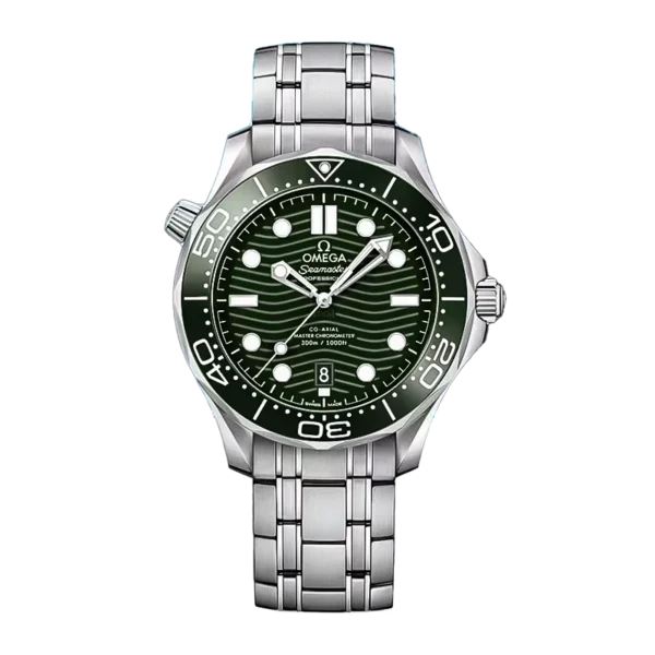 Omega Seamaster Diver 300M Ceramic Bezel Watch On SS Bracelet 1:1 Super Clone On A8800 Movement, a high-density ceramic bezel with enamel dive scales, and a polished ceramic dial with laser-engraved wave patterns. The steel bracelet is individually hand-polished, with beveled edges and full compatibility with original straps. The fluor rubber strap is smooth, thick, and durable. The sapphire crystal is produced by the Verneuil method, ensuring exceptional clarity and a Mohs hardness of 9. The watch is powered by a custom 8800 caliber, rigorously tested for stable performance.