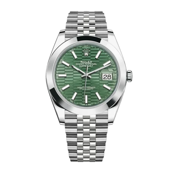 Rolex Datejust 41mm 126300-0022 904L 3235 Movement 1:1 Best Edition Green Dial on Jubilee bracelet Replica Grade:5A 1:1 super clone Factory: Clean/ARF/VS Factory Size : 41mm Movement: Asian Super Clone 3235 Automatic Movement at 28800 vph, 72 hours full power reserve Functions: Hours, minutes, seconds and date display Case: 1:1 high quality 904L stainless steel, screw-in back and crown, deep and double line engraved rehaut, brighter and more accurate engravings, random serial number engraved at 6:00 of the rehaut. Different random serials Crystal: Scratch-proof sapphire crystal with anti-reflection coated 2.5x cyclops (Swiss standard, double-sided, same as genuine) the cyclops is very clear as genuine. Dial: Superlumed dial and hands Bezel: Fluted stainless steel bezel, same shape as genuine Strap: 904L Stainless steel rolex Jubilee bracelet Clasp: Deployant clasp Waterproof >50 Meters