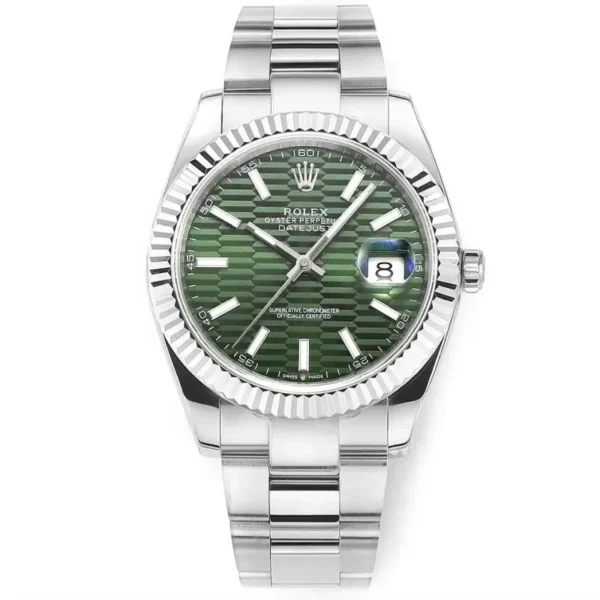 Rolex Datejust 41mm 126334-0029 904L 1:1 Best Edition Green Dial on Oyster bracelet Replica Grade:5A 1:1 super clone Factory: Clean/ARF/VS Factory Size : 41mm Movement: Asian Super Clone 3255 Automatic Movement at 28800 vph, 72 hours full power reserve Functions: Hours, minutes, seconds and date display Case: 1:1 high quality 904L stainless steel, screw-in back and crown, deep and double line engraved rehaut, brighter and more accurate engravings, random serial number engraved at 6:00 of the rehaut. Different random serials Crystal: Scratch-proof sapphire crystal with anti-reflection coated 2.5x cyclops (Swiss standard, double-sided, same as genuine) the cyclops is very clear as genuine. Dial: Superlumed dial and hands in correct Green color Bezel: Fluted stainless steel bezel, same shape as genuine Strap: 904L Stainless steel rolex Oyster bracelet Clasp: Deployant clasp Waterproof >50 Meters